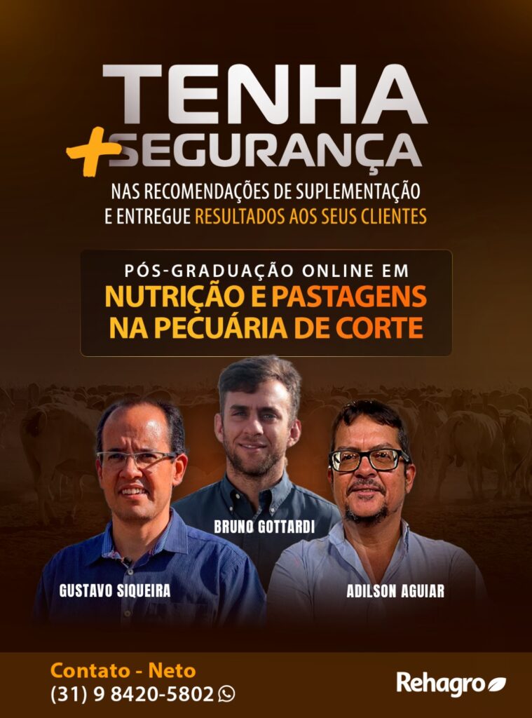Curso online em Nutrição e Pastagens na Pecuária de Corte alia teoria, prática e vivência real com especialistas do campo. Ele é uma das vozes mais respeitadas do Brasil quando o assunto é pecuária de corte. Com décadas de atuação como consultor técnico e professor, Adilson Aguiar agora integra o corpo docente da Pós-graduação Online […]